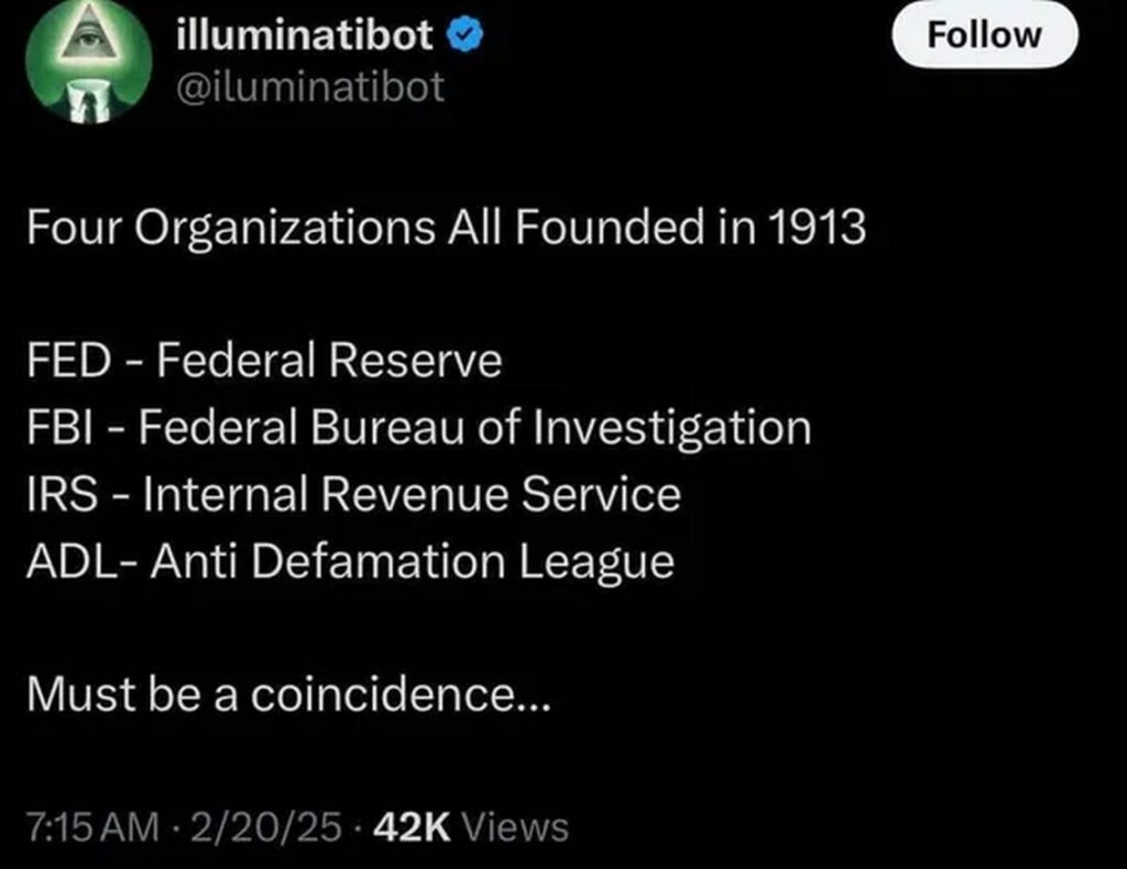 Interestingly, the ADL was in fact founded in 1913. I had to look, because I had long assumed it was formed post-WWII as just another offshoot of the holocaust-industrial complex that has been used as a cudgel against us goyim for some 80 years now. Go figure.