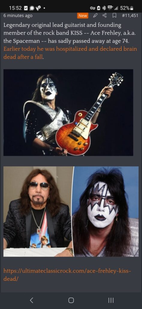 22 thoughts on “Ace Frehley , Guitarist For Kiss Dead At 74”