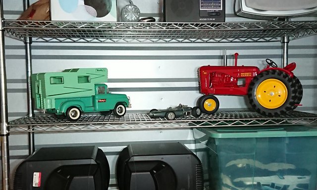 One of my prize possessions. A 1963 Buddy-L Camper. Exactly like the one I had (long gone), in 1963. I bought this one on eBay, for a yard. And felt guilty about that … he had it since his childhood.