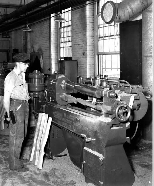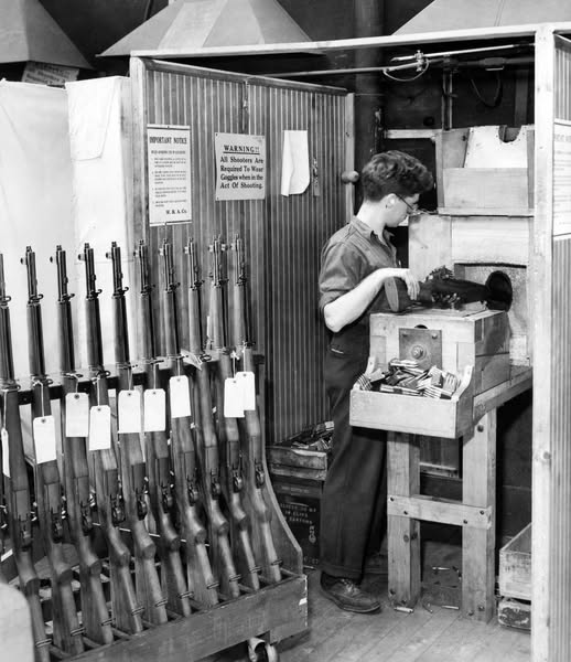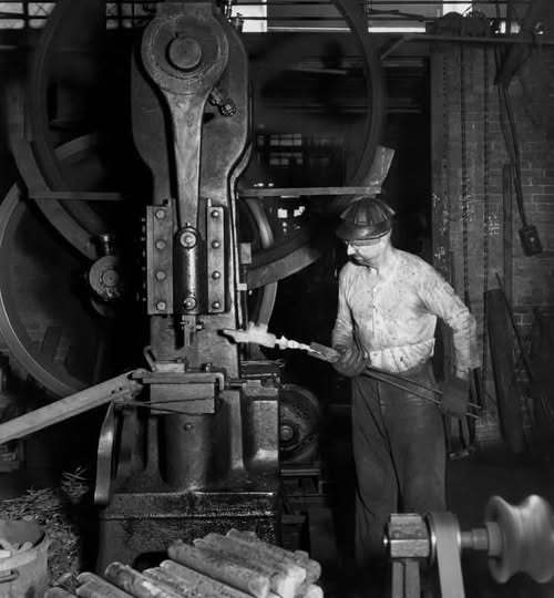 Winchester employee with an M1 Garand Receiver after forging prior to the machining process at the Winchester Repeating Arms Co. factory in New Haven, Connecticut during WW2.