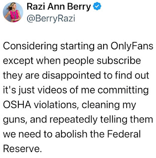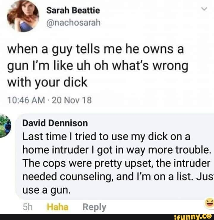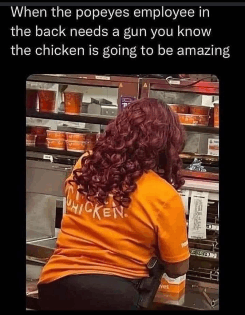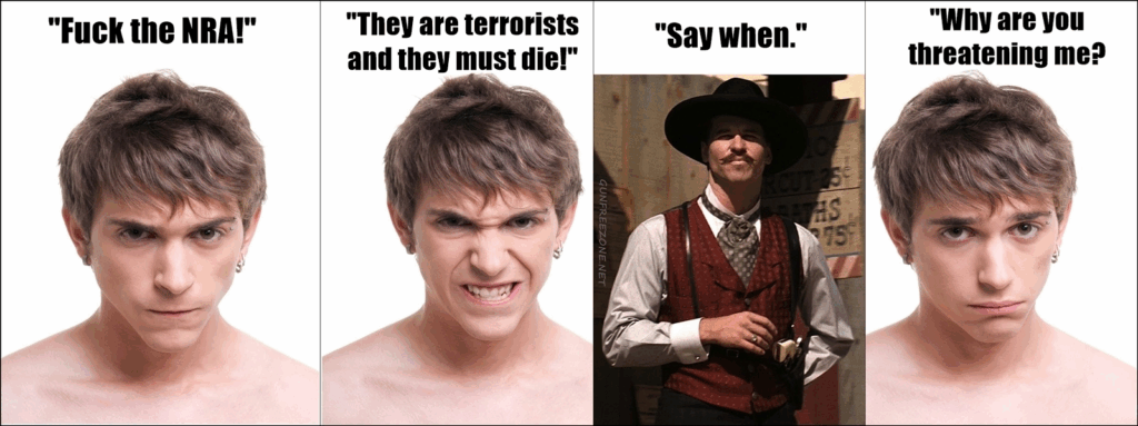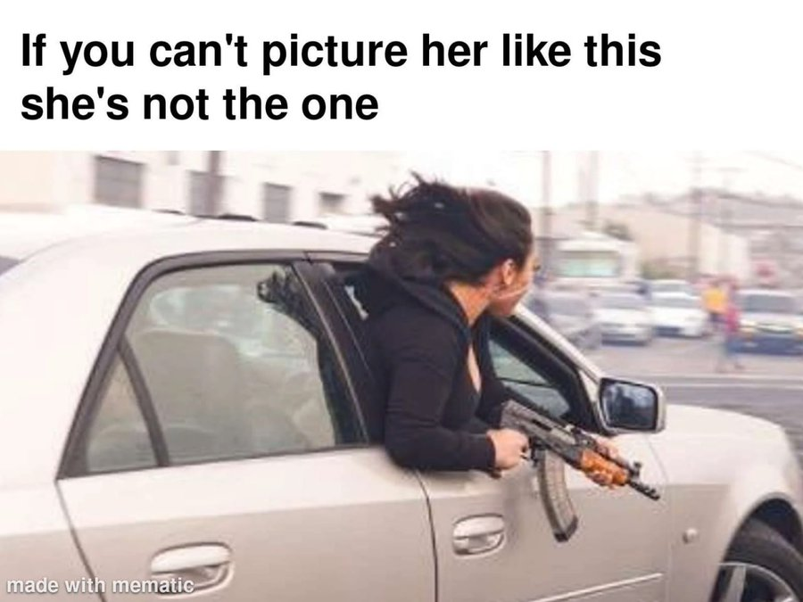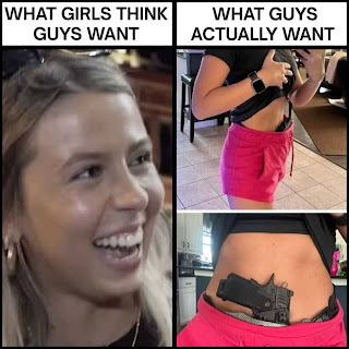 “First one is a somewhat off topic half-assed poke at the gentleman (I forget his alias)(crazyCharlie{Cederq}) who was whining about too much political stuff in Gunday. I’m not pissed about the comment. If I was, I wouldn’t have acknowledged it at all! And anyway, it’s vaguely possible it might be gun related. She might have something appendix carry for all we can tell from this side. End. I meant end, not side. Apparently, I was distracted. Oooopsie!”