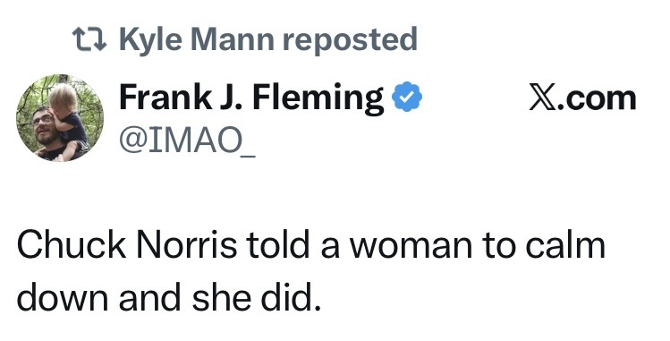 You’re also not Chuck Norris, CederQ. Requiescat In Pace, Chuck. We were fortunate to know and have you while you were here.