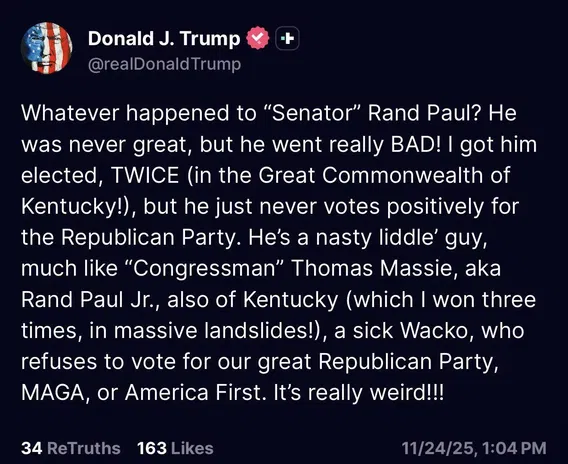 Massie is about as good as it gets when it comes to politicians. Not perfect but right on most issues. If you ever find a politician you agree with 100% you’re a cult member not a citizen.