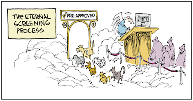 I dunno … my sister’s Chihuahua, man … I don’t think they let that pants-chewing, yapping excuse for a dog into Heaven when he passed. Certainly didn’t let him in via the express lane!