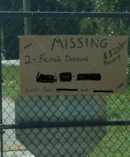 Like the poor person in my neighborhood that lost their, ahem… Datsuns.