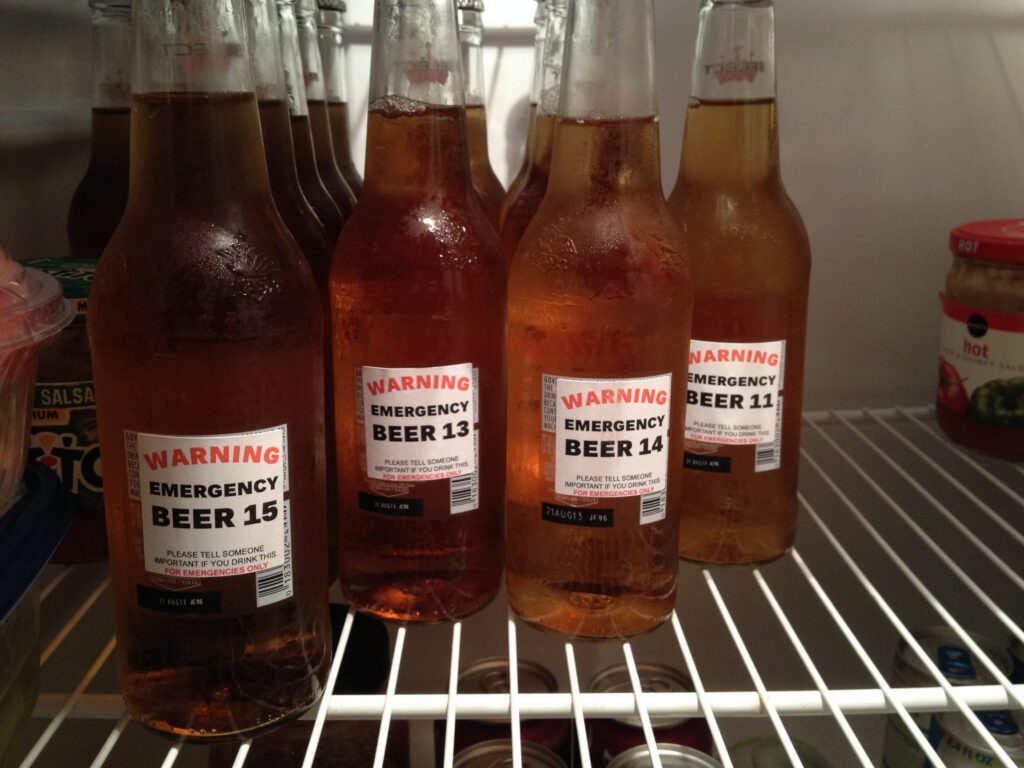 Who the hell runs out of beer? I run out of refrigerator room for them but never out of them. Speaking of beer….