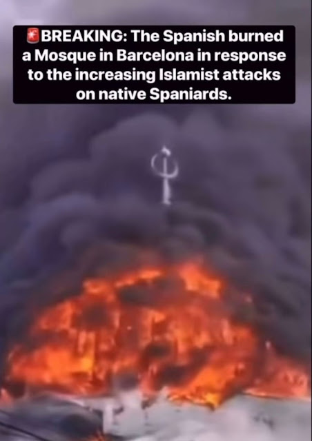 Just sayin’, that image is from a fire in Jakarta, October, 2022. There was a fire in a mosque in Catalonia in July this year – suspected arson, but I can’t find any follow-up news regarding that.